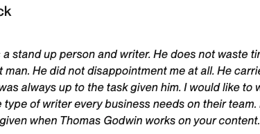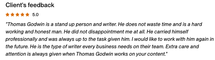 "Very good writer. Thanks for all the amazing work you've provided!"
